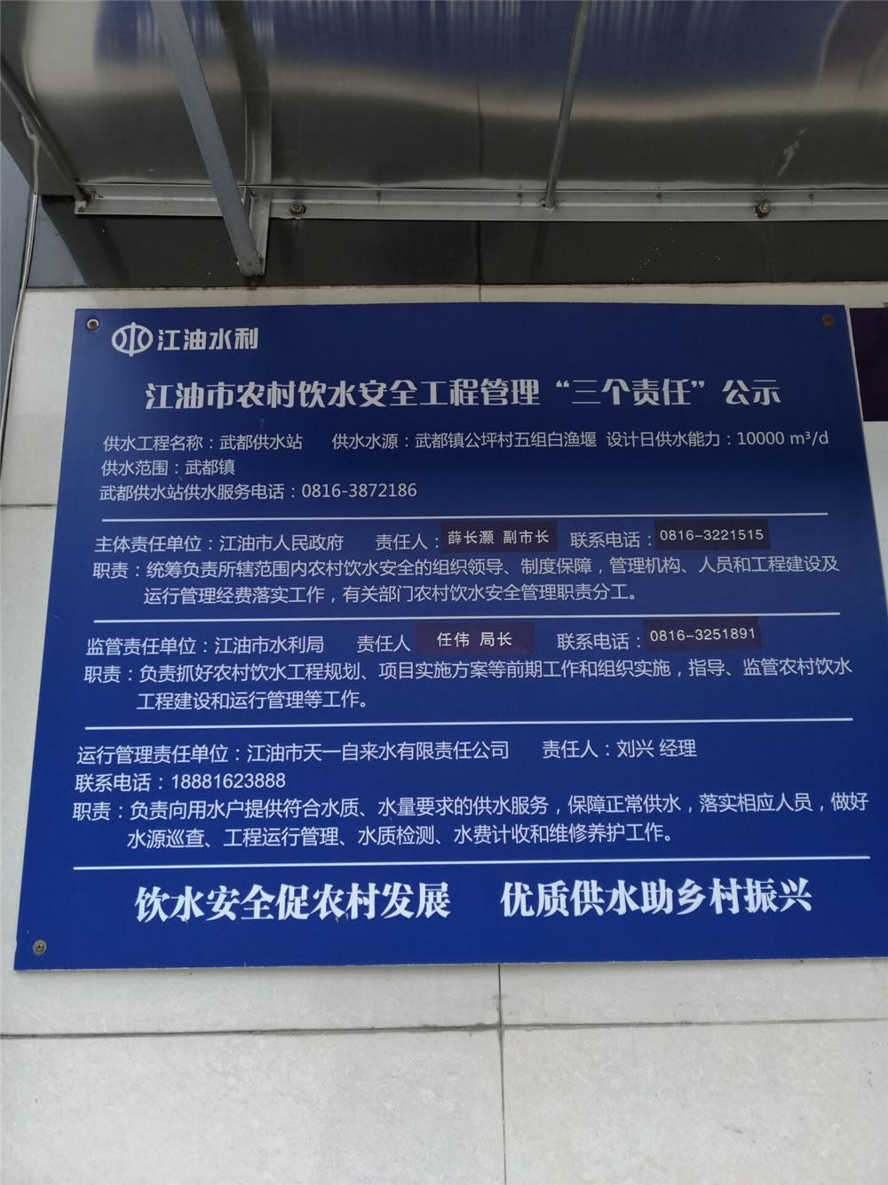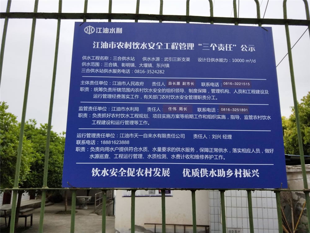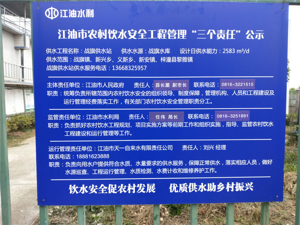 江油市農(nóng)村飲水安全工程管理“三個責(zé)任”公示